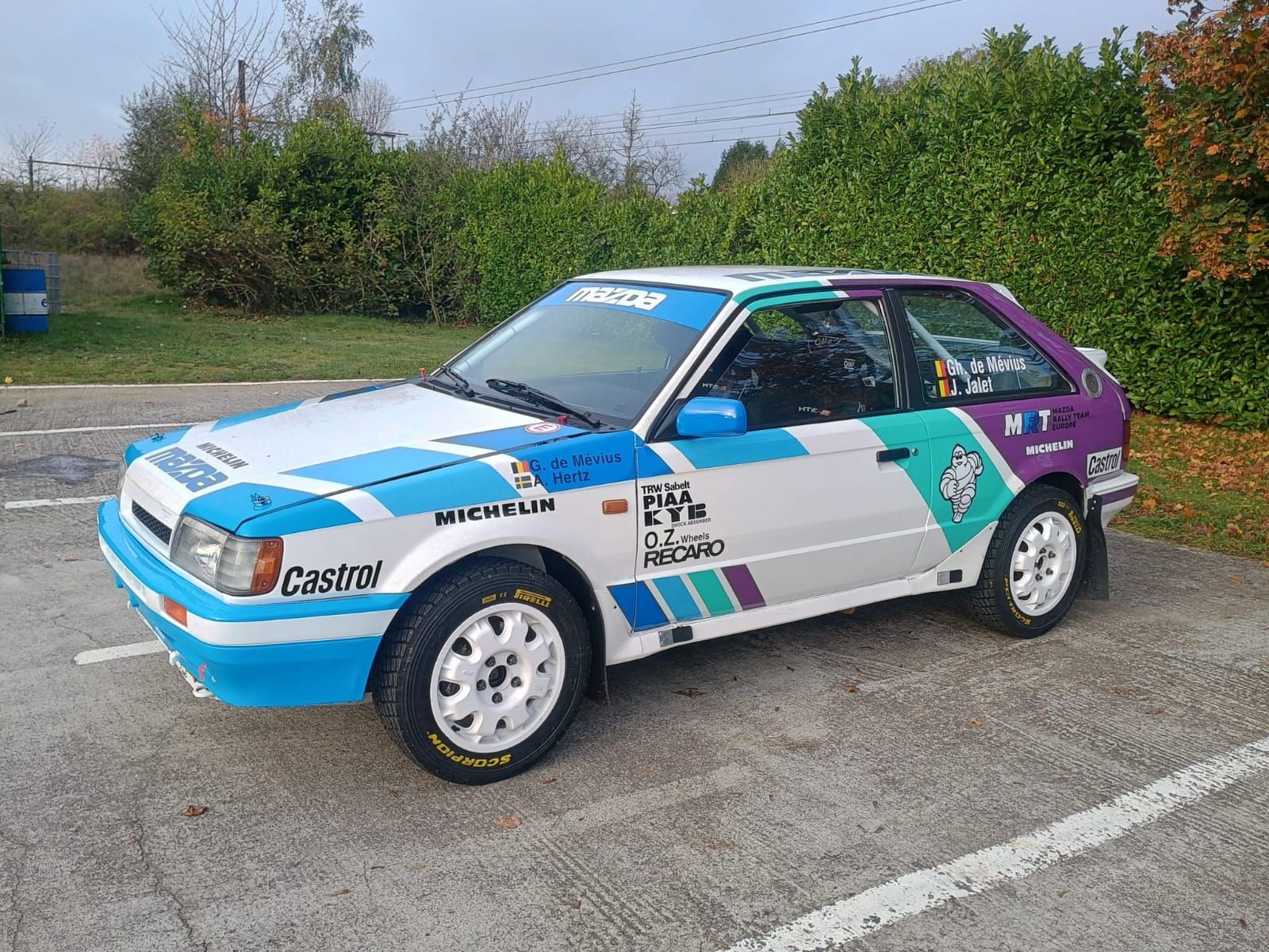 C'est la toute bonne nouvelle de cette fin de semaine sur le front des Legend Boucles @ Bastogne 2025 ! Alors qu'il n'était pas nécessairement attendu sur le podium de départ, pour cause de paternité toute proche, Ghislain de Mévius sera finalement de la partie en compagnie de l'inséparable Johan Jalet ! Exit la Ford Escort Mk2 des années précédentes, place à une Mazda 323 4WD Gr.A ! Qui reprend les couleurs du Rallye d'Australie 1990 que Grégoire de Mévius, le papa de Ghislain, et Arne Hertz avaient achevé en 6e position du classement général ! En fait, non seulement cette Mazda reprend les couleurs de l'auto de 1990, mais il s'agit de la véritable 323 4WD Gr.A de l'époque, que la famille de Mévius a retrouvée et rachetée il y a un an ! Totalement restaurée, elle est prête à affronter les RT de la région de Bastogne !