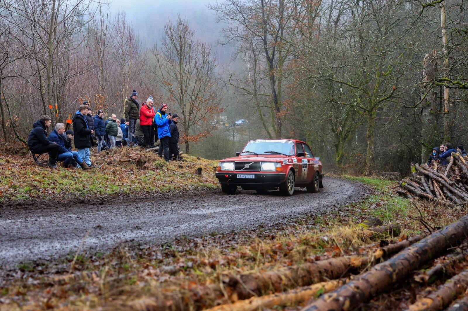Le début des Legend Boucles @ Bastogne 2026 n'est pas facile pour Marc Duez et Hendrik Béatse. Non seulement les soucis de turbo sont toujours bien présents, mais le copilote est malade, ce qui oblige le Grand à rouler à vue. Comble de malchance, une vis de support d'alternateur a cassé, et le team n'en a pas de rechange. La Volvo 240 Turbo GDM Motors est donc hors délais, et l'équipe tente de trouver cette vis qu'elle ne possède pas dans son lot de pièce de rechange. Avis aux intéressés... (Vincent Franssen / Photo RAC Spa - J.F. & J. Fiasse)
