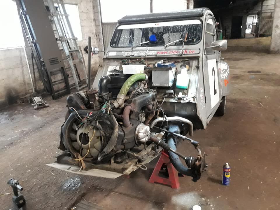Cela s'appelle l'esprit Legend Boucles ! Souvenez-vous, le 1er novembre dernier, on vous parlait de l'incontournable Citroën 2CV de Patrick Maréchal et Dominique Beaujean, duo qui avait réussi la performance de décrocher la pole position au petit jeu des inscriptions. Depuis lors, les gaillards ont travaillé sur leur 'deuche' type AZ de 1966, engagée en 'Classic', et lors d'une séance de tests (et ouais...), la boîte a décidé qu'elle n'irait pas plus loin ! Résultat : retour sur les chandelles pour procéder au remplacement de l'organe, le tout... dans la grange qui sert d'atelier ! C'est sans doute moins pro que chez d'autres, mais c'est plus fun, d'autant que l'endroit est aussi fréquenté par des vaches et leurs veaux ! Il en faut néanmoins plus pour perturber Patrick et Dominique, qui décomptent les jours avant Bastogne... "Valait mieux maintenant qu'en plein milieu de l'épreuve", claironnent-ils en choeur, large sourire aux lèbres ! Et vive la 'deuche'... (Vincent Franssen)