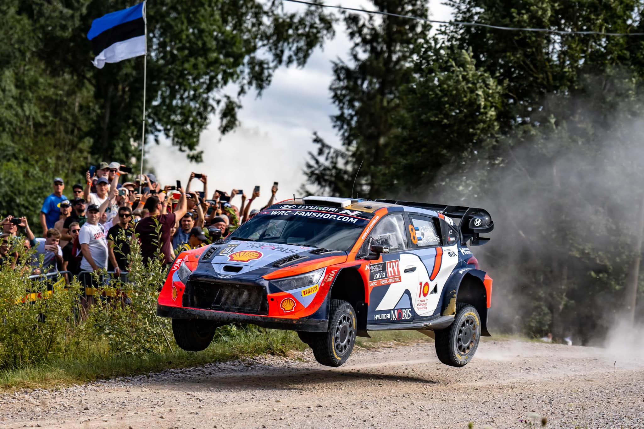 Il aura fallu attendre l'ES11 Ivande, spéciale disputée une seule fois, pour voir surgir une Hyundai i20 N Rally1 Hybrid au sommet du classement ! Des oeuvres d'Ott Tänak, évidemment, le seul pilote de la marque coréenne positionné décemment sur la route. L'Estonien a devancé Takamoto Katsuta (Toyota, 2"7), le leader Kalle Rovenperä (2"8), qui ne doit déjà plus attaquer à fond, un Sébastien Ogier (Toyota, 3"5) qui a frôlé la correctionnelle juste avant l'arrivée, Elfyn Evans (Toyota, 5"5), Adrien Fourmaux (Ford, 6"6), Martins Sesks (Ford, 7"2), moins à son affaire que vendredi, Thierry Neuville (Hyundai, 14"4), Esapekka Lappi (Hyundai, 20"5) et Grégoire Munster (Ford, 29"7).