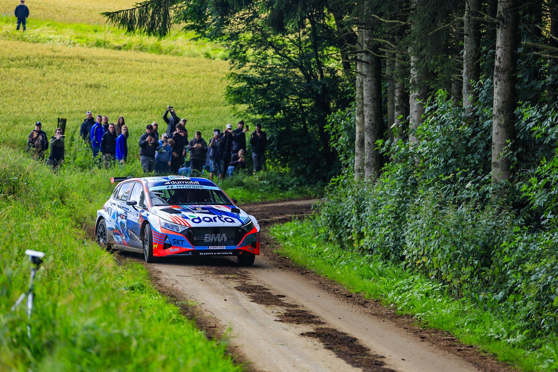 Le Rallye Lëtzebuerg 2024, disputé ce samedi, a déjà permis à l'Allemand Marijan Griebel (Skoda Fabia RS Rally2) de se mettre en évidence, signant trois des quatre premiers scratches de l'épreuve. Au terme de la première des trois boucles, il menait la danse devant Charles Munster (Hyundai 20 N Rally2, 20"4), le plus rapide dans l'ES3, et Tom Heindrichs (Toyota GR Yaris Rally2, 39"6), dont les débuts en Rally2 sont très bons. Suivent pour l'heure Steve Fernandes (Hyundai i20 N Rally2, 59"4), Ronny Foxius (Skoda Fabia R5 Evo, 1'05"0) et Bob Kelken (Ford Escort Mk2, 1'49"4). 9ème place provisoire pour Emeric Rary et Guy Burniat (Citroën C3 Rally2). (Vincent Franssen / Photo Jérôme Fiasse)