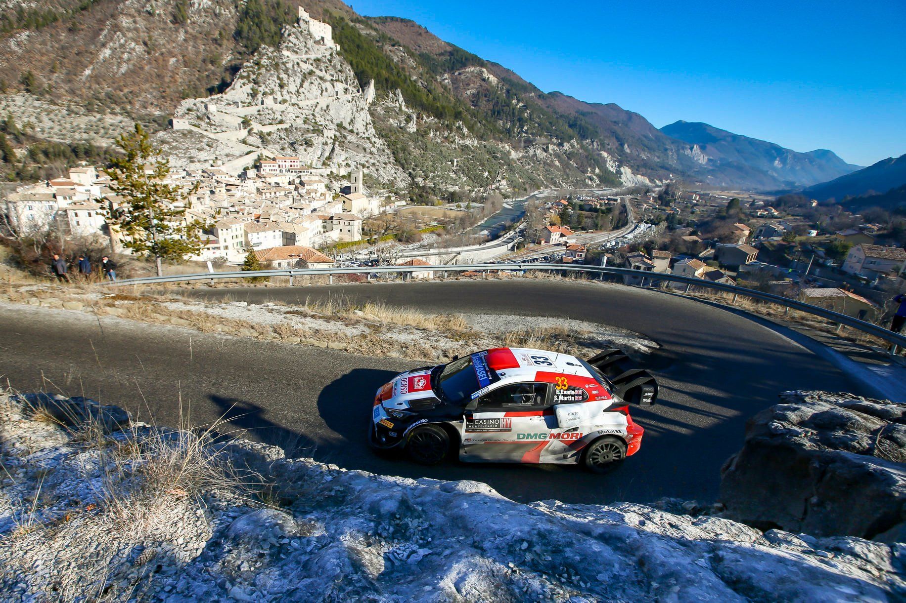 C'est reparti sur le front du 90ème Rallye de Monte-Carlo, avec une E9 Le Fugeret-Thorame Haute (16,8 km) qui a permis à Elfyn Evans (Toyota) de signer le premier scratch du jour sur un asphalte sale, mais dénué de la moindre portion de glace. Après deux premières journées très difficiles, Kalle Rovanperä (Toyota) a sans doute profité de sa position sur la route pour redresser la barre, signant le 2ème meilleur temps à 0"7, précédant Sébastien Ogier (Toyota, 3"9), pas en phase avec le système hybride de sa Yaris, et Thierry Neuville (Hyundai, 5"0), une fois encore meilleur représentant du clan coréen. Il est vrai que cette spéciale a tourné au désastre pour Ott Tänak (Hyundai), victime d'une crevaison qui lui a coûté 1'16"8 !