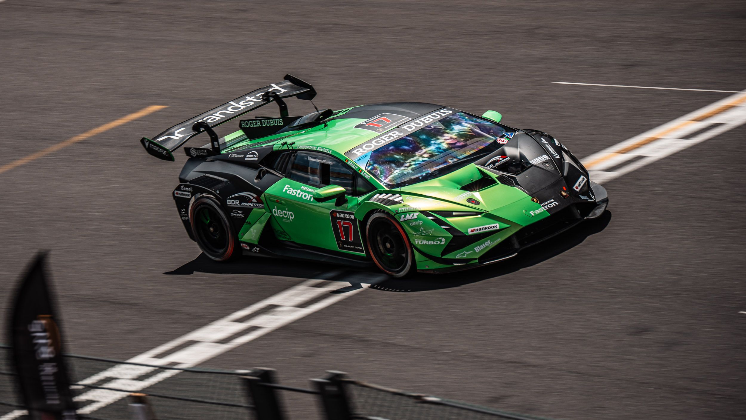 Disputée samedi devant des tribunes combles, la Course 2 voyait Serge Doms, qui avait pris le départ, hériter d’une pénalité de 10 secondes pour avoir gêné un concurrent... qu’il n’avait tout simplement pas vu, dès l’instant où celui-ci était en train de le remonter avec deux roues dans l’herbe ! "Je suis monté en piste en mode guerrier, et j’ai sorti le relais de ma vie ! Une neutralisation m’a permis de recoller au peloton, pour finalement terminer au 5e rang de la Lamborghini Cup ! J’aurais pu en faire un peu plus et tenter des attaques pour prétendre au podium, mais avec 10 secondes de pénalité ajoutées à notre temps de fin de course, il était inutile de risquer l’auto…"