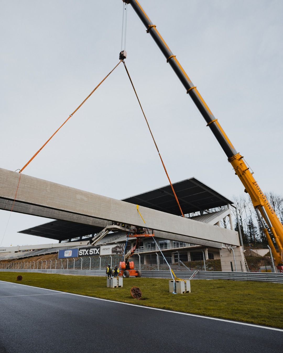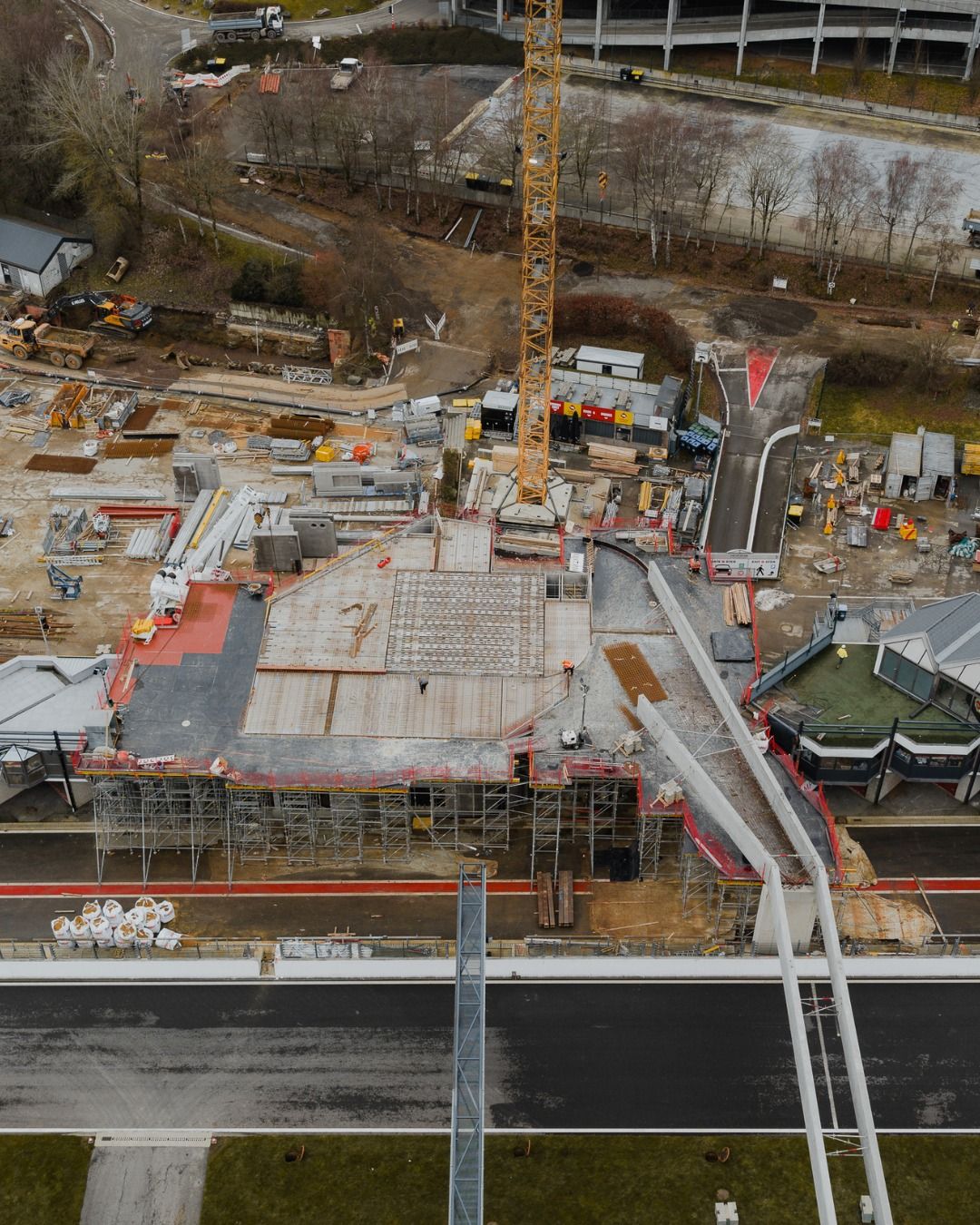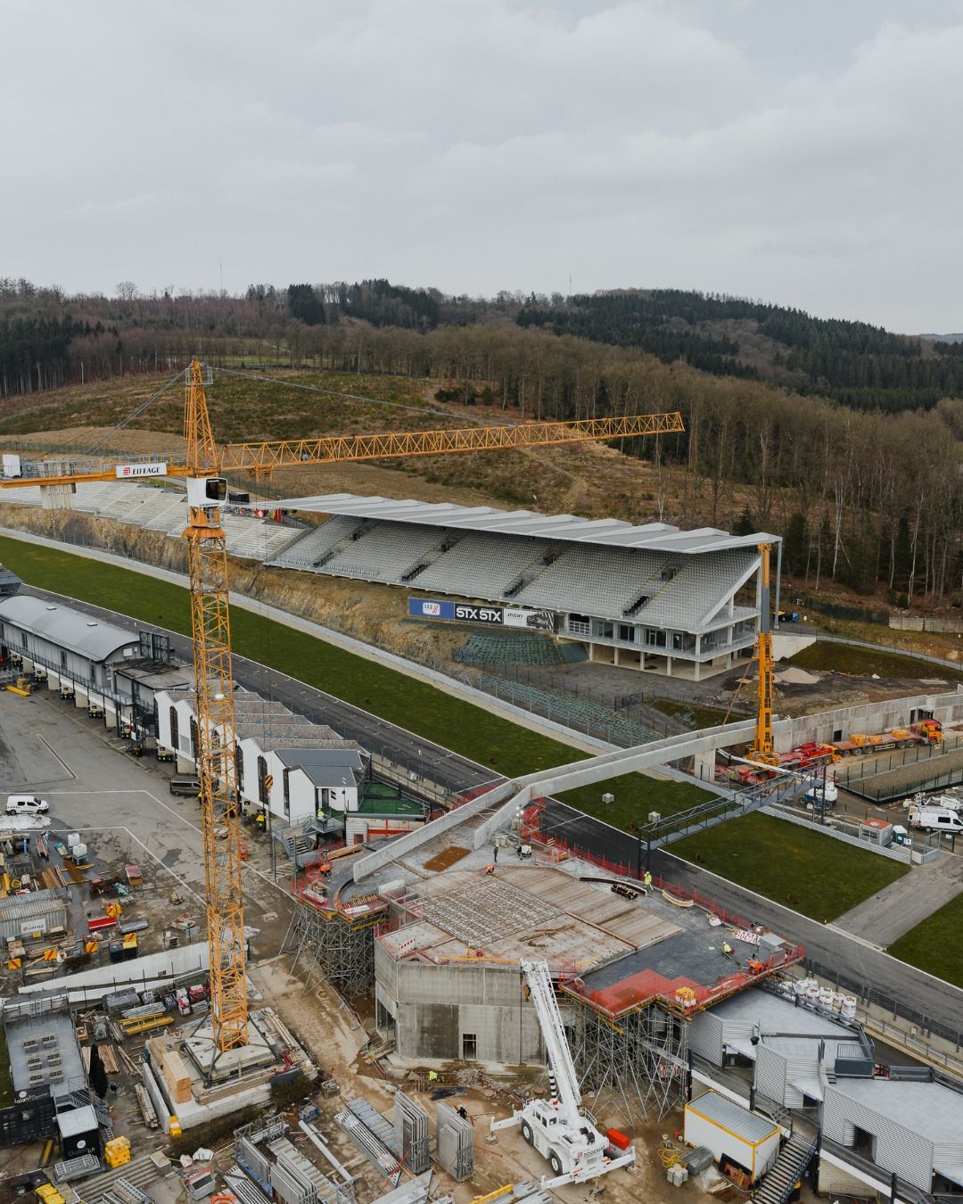 Si l'hiver qui a débuté il y a un bon mois est bien présent, avec son lot de températures froides et de précipitations diverses, sur le Circuit de Spa-Francorchamps, les travaux se poursuivrent à un rythme soutenu ! Et comme on peut le constater sur les photos postées ce lundi après-midi, la Uhoda Tower prend progressivement forme, tandis que la passerelle la reliant à la Fan Zone a fait son apparition et a été posée ! Pour l'heure, tout cela ressemble encore à un vaste chantier, ce qui est d'ailleurs le cas, mais ça avance. Idem du côté de l'entrée Ster, où le nouveau bâtiment d'accès au Circuit se concrétise. Bref, une fois encore, l'intersaison est mise à profit pour permettre au 'plus beau circuit du monde' d'encore faire parler de lui dès le coup d'envoi des activités sportives 2026... (Vincent Franssen / Photos Circuit de Spa-Francorchamps)
