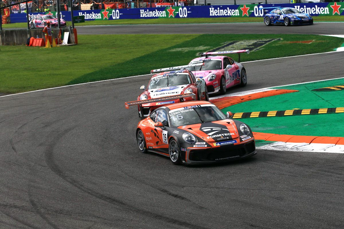 L'avant-dernier meeting de la Porsche Mobil 1 Supercup s'est disputé à Monza ce dimanche, l'occasion pour le Hollandais Larry ten Voorde (MRS GT-Racing) de décrocher sa première victoire de la saison en venant à bout de l'expert Michael Ammermüller (BWT Lechner) et de l'Australien Joey Mawson (Team Australia). 5ème place pour le Turc Ayhancan Güven (Martinet by Almeras) - issu de la Porsche Carrera Cup Benelux-, deuxième meilleur Rookie du jour derrière Mawson, et une fois encore impressionnant. Au championnat, avant le 'double header' de Mexico, Ammermüller reste leader du championnat avec 110 points, contre 96 à ten Voorde, 92 à un Julien Andlauer contraint à l'abandon ce dimanche, et 88 à Ayhancan Güven. (Vincent Franssen / Photos R.I.P. de Coster)