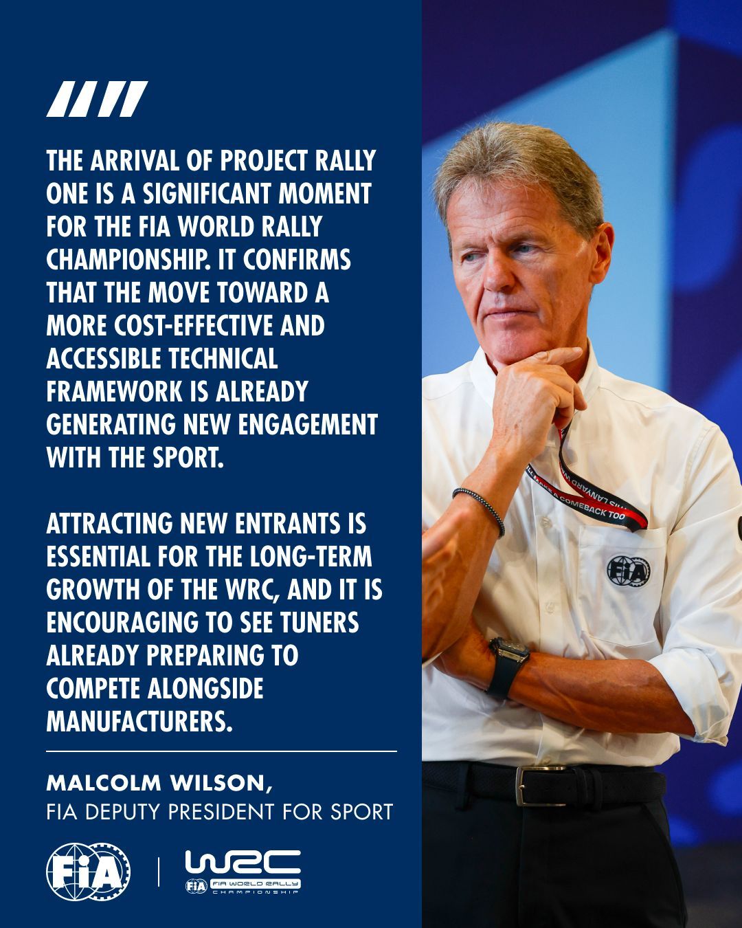 "L'arrivée du Projet Rally One est un moment important pour le FIA World Rally Championship, commente Malcolm Wilson, FIA Deputy President form Sport de la FIA. Il confirme que le passage à de nouvelles règles techniques limitant les coûts et se voulant accessibles est déjà de nature à entraîner de nouveaux engagements dans la discipline. De nouveaux arrivants sont essentiels pour le développement à long terme du WRC, et le fait de voir des 'Tuners' s'apprêtant à affronter des Constructeurs est encourageant."