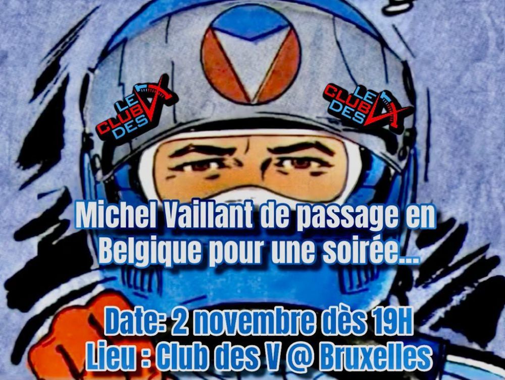 Le célébrissime Club des V, au sud de Bruxelles, poursuit sa série de soirées vroom vroom, avec ce jeudi 2 novembre, dès 18h30, un événement sur le thème toujours porteur de Michel Vaillant ! Le célèbre pilote et son mentor Jean-Louis Dauger seront en effet de passage dans la capitale, en compagnie des auteurs Denis Lapière, Marc Bourgne et Vincent Dutreuil, ainsi que de Stéphane Barbé, à la base de l'excellent ouvrage 'Vaillante, une marque automobile française'. Des vêtements à l'effigie de Michel Vaillant seront également proposés à un tarif exclusif !