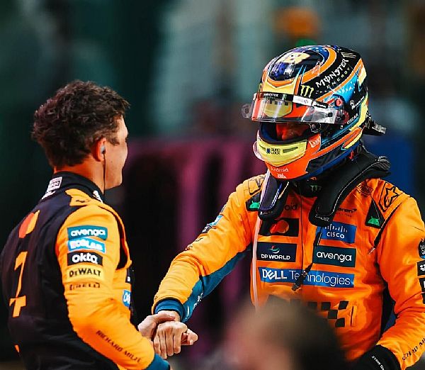 Stroll (Aston Martin), Hamilton (Ferrari) et les deux Alpine de Gasly et Colapinto dans les stands : cela faisait 16 voitures seulement sur la grille au départ du dernier sprint de la saison, avec 19 tours du circuit de Losail (Qatar) au programme. Avec uniquement des pneus mediums pour tout le monde. A l’extinction des feux, Piastri (McLaren), le poleman, s’installait à la première place, avec Russell (Mercedes) derrière lui. Norris (McLaren) devait bagarrer dans les deux premiers virages face à Alonso (Aston Martin) et Tsunoda (Red Bull), mais conservait sa 3e position. Derrière l’Anglais par contre, le Japonais passait l'Espagnol, imité par son leader un virage plus tard. Tsunoda, en bon lieutenant, s'effaçait juste après face à son leader. Antonelli (Mercedes), Sainz (Williams), Hadjar (Racing Bulls), bien parti, et Albon (Williams) complétaient le top 10. A l’inverse, Leclerc (Ferrari), 9e sur la grille, mais en délicatesse avec sa monoplace dans le premier tour, retombait dans la deuxième moitié du classement. Pendant quelques boucles, Verstappen se montrait pressant sur Norris, sans pour autant pouvoir l’attaquer.