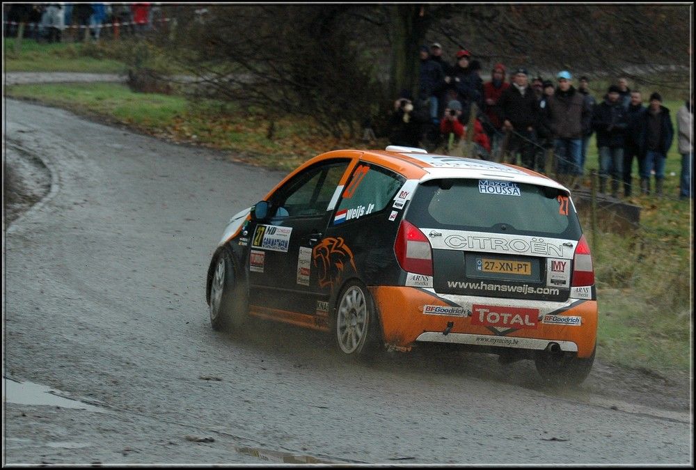 Présent à Huy, Hans Weijs Jr, le représentant de la fédération néerlandaise, a mordu la poussière. Très spectaculaire, le Néerlandais attaquait au maximum et signait le premier meilleur temps. Hans Weijs commettait ensuite plusieurs fautes dans Clavier et Marchin, où la C2-R2 Max orange évitait de justesse la caravane du Point Stop. Dans Wanze-Marneffe, il perdait définitivement sa deuxième place: "Nous sommes sortis à 10 km/h à cause de toute la boue recouvrant la route. Nous étions embourbés jusqu'aux essieux. Il a fallu quatre minutes aux spectateurs pour nous sortir de ce mauvais pas." Dimanche, le pilote néerlandais partait une nouvelle fois à la faute dans l'ES13 et crevait.