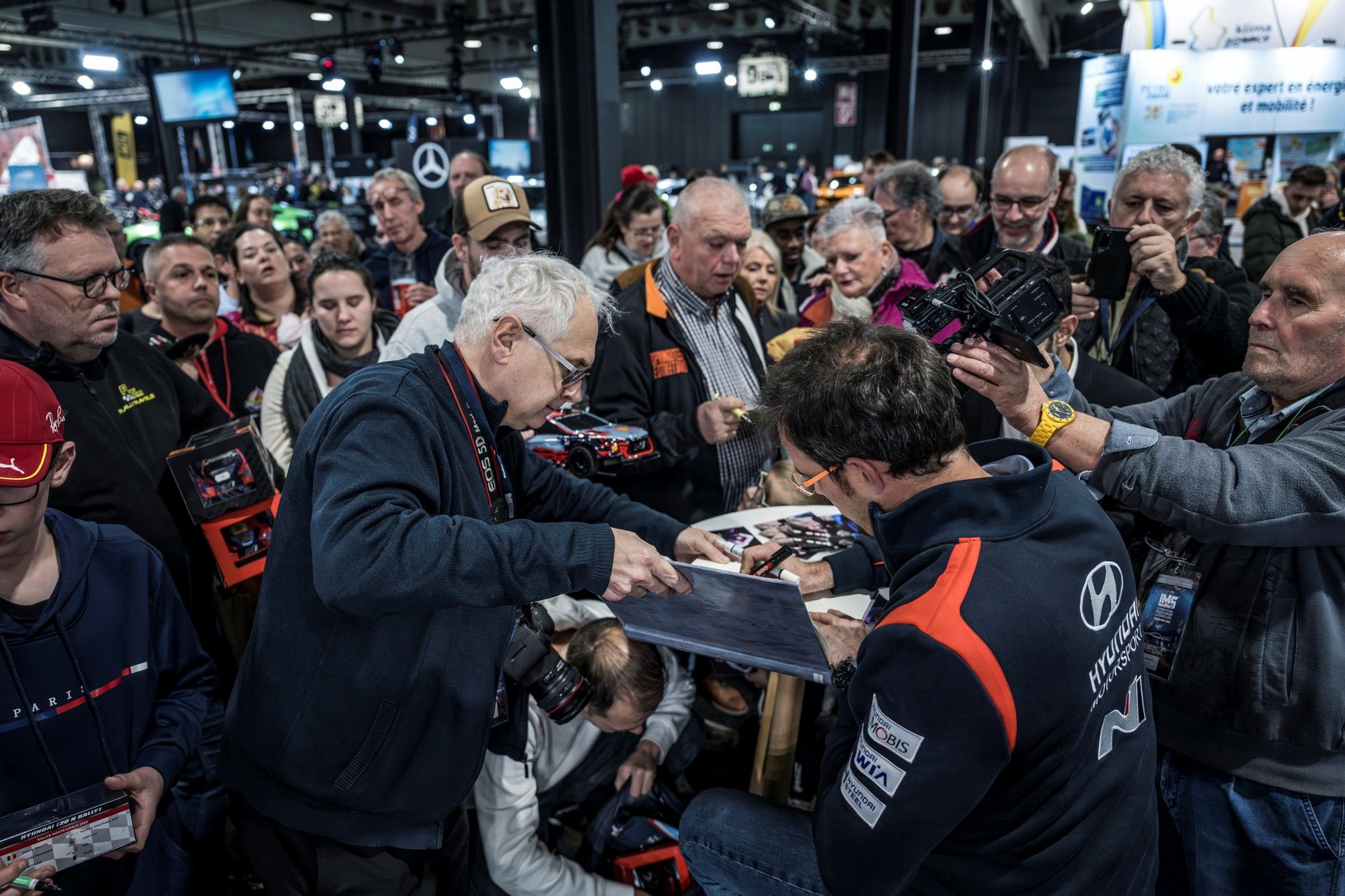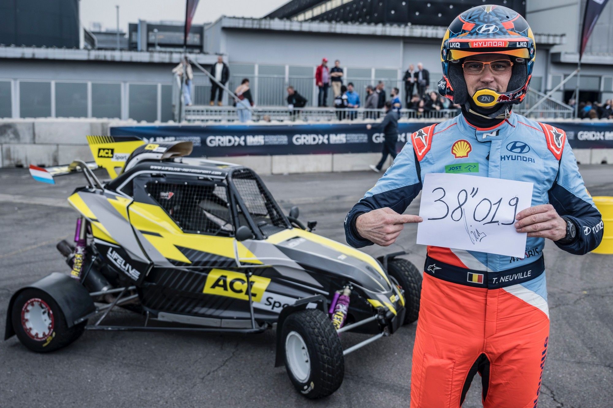 En guise de temps fort du jour, Thierry Neuville, champion du monde des rallyes 2024, n’avait aucune chance de passer inaperçu dans son habit de lumière Hyundai Motorsport ! Le Saint-Vithois, qui a rendu visite à son partenaire Quality Garage, a d’emblée pris la direction de la GridX Motor Show Arena, afin de fixer un chrono de référence sur le parcours de la RaceX – ACL Champions Edition, le tout au volant d’une Cross-Car TN11 de son équipe Lifelive Motorsport ! Ces samedi et dimanche, les 24 meilleurs pilotes du Grand-Duché de Luxembourg, sélectionnés par l’ACL Sport, tenteront de s’approcher de ce temps de 38’’019, voire de l’améliorer ! Ce qui est sûr, c’est que Neuville a fait le bonheur des visiteurs en étant, comme de coutume, d'une totale disponibilité.