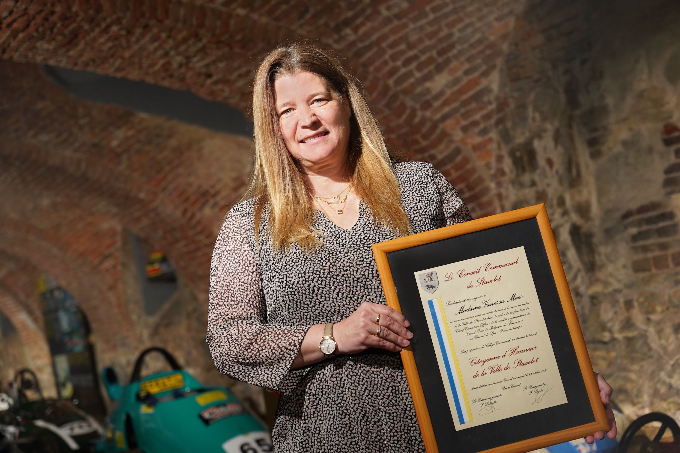 Ce jeudi soir, le Musée du Circuit de Spa-Francorchamps, dans les superbes caves de l'Abbaye de Stavelot, a servi de cadre à une petite cérémonie bien sympathique. L'administration communale de Stavelot a en effet décidé d'accorder à Vanessa Maes, responsable de Spa Grand Prix et organisatrice du Belgian Grand Prix, le statut de citoyenne d'honneur. Une juste mise en évidence pour une Flémalloise qui, entourée de son équipe, permet au Circuit de Spa-Francorchamps, et par extension à la commune de Stavelot, de rayonner chaque année au niveau mondial.