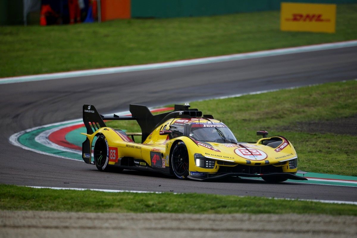 C'est en Emilie-Romagne que le FIA WEC entame sa saison européenne avec le rendez-vous d'Imola. Pour la première séance d'essais libres programmée durant ce temps de midi, les Ferrari 499P se sont, comme attendu, montrées les plus rapides. Le meilleur temps est tombé dans l'escarcelle de la #83 de Kubica - Ye - Hanson, devant la #50 de Fuoco - Molina - Nielsen, alors que la #51 de Pier Guidi - Calado - Giovinazzi s'est classée 4e. La bonne surprise vient du clan Cadillac Hertz Team Jota, avec le 3e temps de la #12 pilotée par Lynn - Stevens - Nato et le 5e chrono de la #38 de Bamber - Bourdais - Button. On retrouve ensuite, 6e, l'Alpine #36 de Gounon - Makowiecki - Schumacher. La première Toyota se classe 7e, avec Buemi - Hartley - Hirakawa. Si Ferrari et Cadillac ont le sourire, c'est à nouveau plus compliqué pour les Porsche 963 (8e pour Estre - Vanthoor - Campbell et 12e pour Andlauer - Christensen - Jaminet) et surtout les BMW M Hybrid V8 du team WRT qui ne peuvent faire mieux que 13e et 14e temps. Á signaler encore les difficultés de la Peugeot 9X8 #94 de Duval - Jakobsen - Vandoorne qui n'a bouclé que 19 tours.