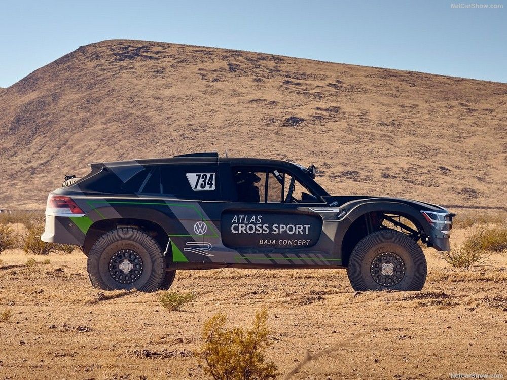 Au même moment, à quelques heures près, le Volkswagen Atlas Cross Sport R était présenté du côté de Los Angeles. Il s'agit d'un buggy à quatre roues motrices, clairement badgé VW, qui sera aligné dans le cadre des épreuves de type rallye-raid organisées aux States... voire ailleurs. Et que retrouve-t-on sous le capot du VW Atlas Cross Sport R ? Un 4 cylindres 2 litres dérivé des mécaniques WRC et World RX, dont la puissance a été ramenée à 480 chevaux. Bref, un bon vieux moteur thermique pour faire des bonds impressionnants dans le désert...