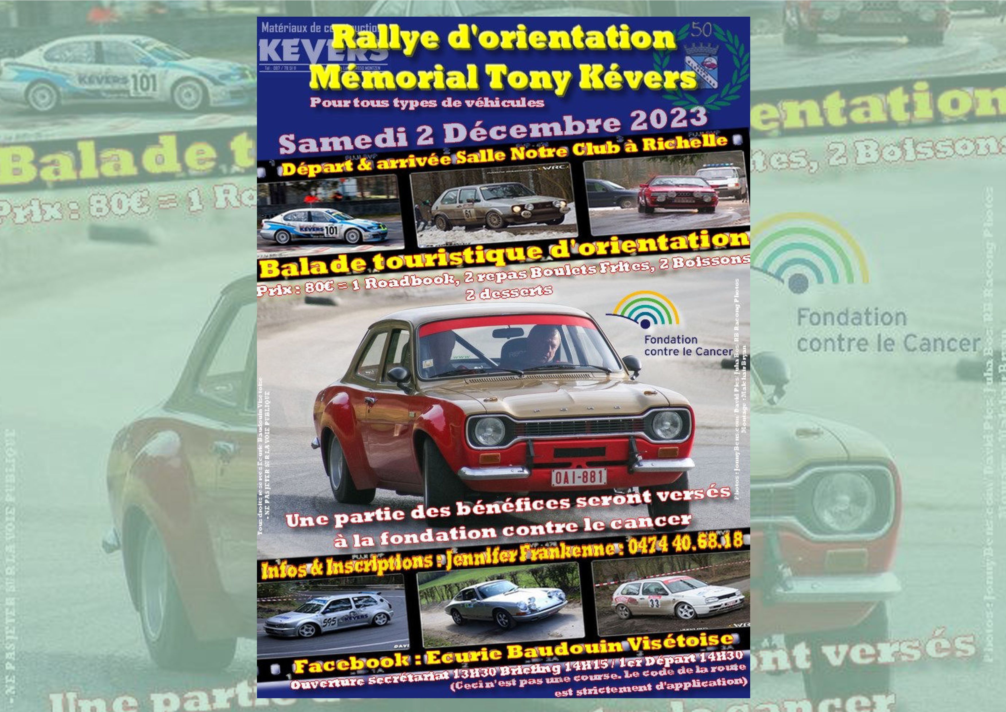 L'Ecurie Baudouin Visétoise a, comme tellement d'autres personnes, été marquée par la disparition de Tony Kevers en cette année 2023. Le pilote, qui avait compté parmi les premiers membres du club, était un incontournable de ce club de passionnés de compétition en Basse-Meuse liégeoise. Afin de lui rendre hommage d'une manière qu'il aurait appréciée, une balade d'orientation Mémorial Tony Kevers sera organisée le samedi 2 décembre depuis la salle de l'Ecurie, à Richelle. Tous les types de véhicules, anciens comme modernes, sont les bienvenus, l'événement débutant à 13h30 par un briefing, avant le départ effectif pour un parcours de plus ou moins 120 kilomètres. La participation est proposée au tarif de 80 euros, somme comprenant le roadbook, mais aussi deux repas (boulets frites), deux boissons et deux desserts. La plus grande partie des bénéfices sera reversée à la Fondation contre le Cancer.