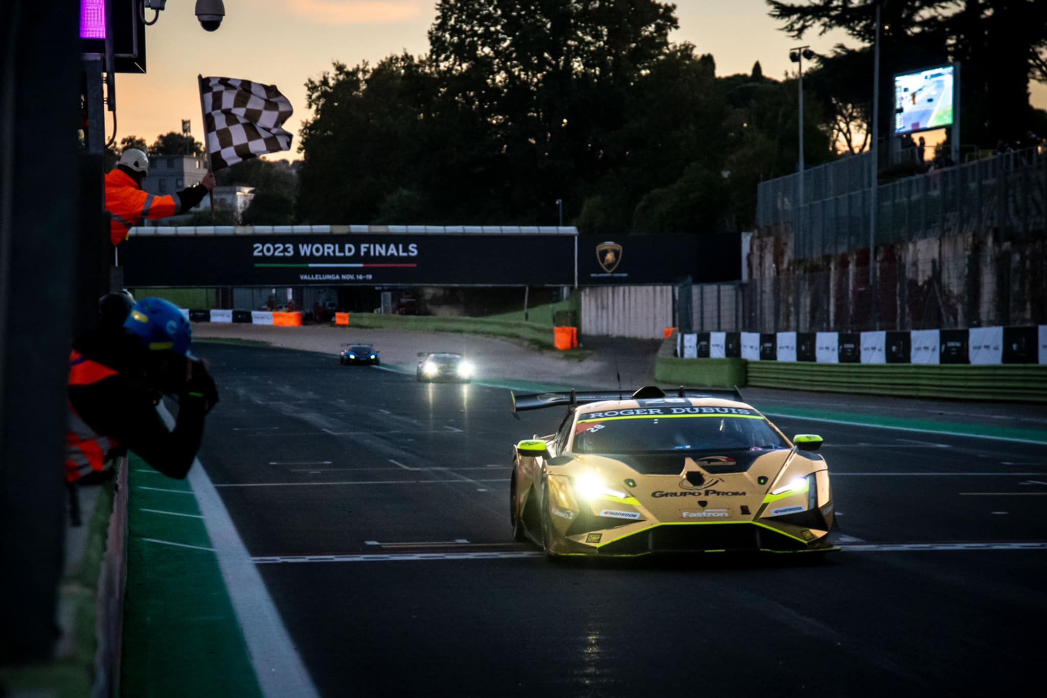 Le week-end a été particulièrement intense à Vallelunga, cadre des deux dernières courses du Lamborghini Super Trofeo Europe, mais aussi des deux joutes faisant office de Lamborghini World Finals ! Et une fois encore, les Belges ont fait fort, très fort... Dans la Course 1 du Super Trofeo Europe, Gilles Stadsbader et son équipier Mattia Michelotto l'emportaient une nouvelle fois avec la Huracan Super Trofeo de l'équipe VSR de Vincenzo Sospiri, devant le Néo-Zélandais Brendon Leitch (Leipert) et Ugo de Wilde, toujours associé au Portugais Rodrigo Testa (Iron Lynx). Amaury Bonduel (BDR Compétition by Grupo Prom) échouait au pied du podium, en 4ème position.