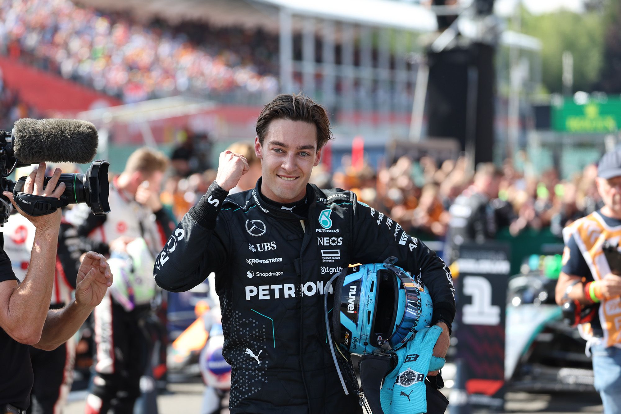 George Russell signait donc son deuxième succès de la saison, le troisième de sa carrière, agrémenté d’un doublé pour Mercedes. Piastri, à tout juste une seconde de Russell, complétait un superbe podium. Un peu plus loin, Leclerc contenait jusqu’au bout Verstappen et Norris pour les accessits, avec Sainz et Perez encore un peu plus loin. Les deux derniers points allaient à Alonso (Aston Martin) et Ocon (Alpine).