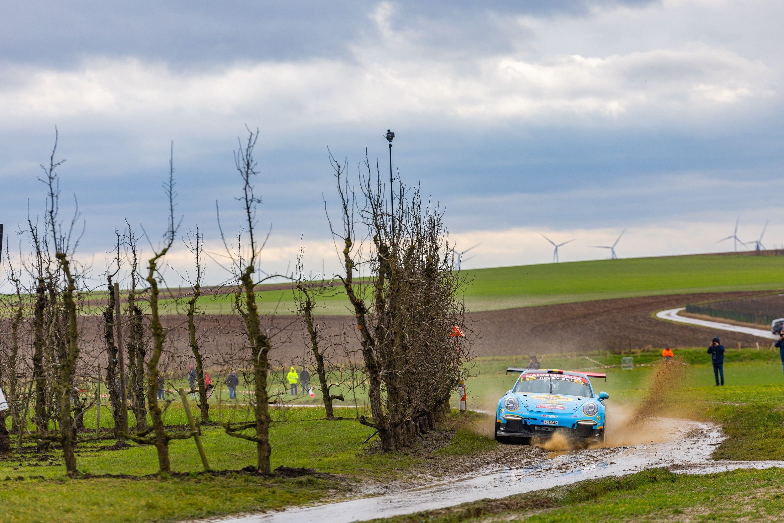 Comme le veut une certaine tradition, la météo a allègrement compliqué la tâche des concurrents du Rally van Haspengouw, première manche du Kroon-Oil Belgian Rally Championship 2025. Elles étaient encore passables lors des deux premières spéciales, ce qui permettait même à Cédric Cherain et Damien Withers de se retrouver au 3e rang du classement général provisoire ! Une sacrée performance pour une Porsche dans ces conditions…