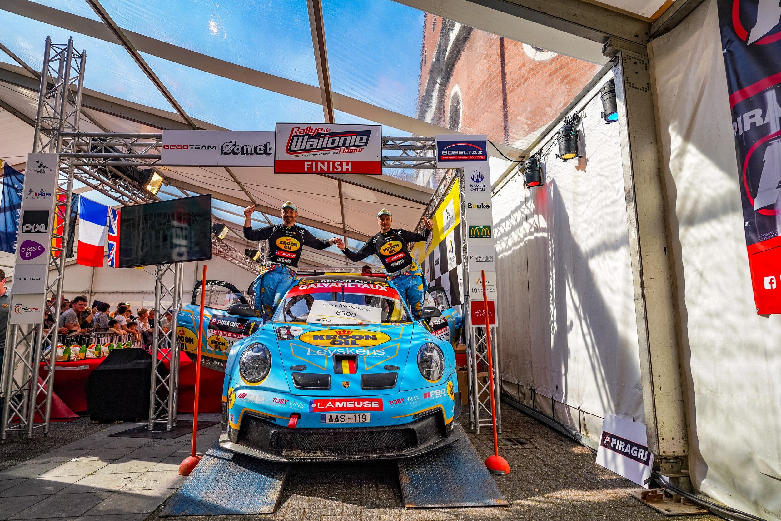 C’est dans l’ultime passage de Nannine, trois spéciales avant l’arrivée, que la Porsche 992 Rally GT portant notamment les couleurs de Kroon-Oil et LaMeuse a glissé du haut du classement… "Le moteur s’est soudainement coupé, se remémore Cédric. J’ai de suite effectué un reset, et la mécanique a fini par repartir. Deux minutes s’étaient écoulées. Par la suite, il n’y a plus eu le moindre problème, dès l’instant où nous avons signé les deux derniers scratches, de quoi faire de nous – largement d’ailleurs ! – les meilleurs performers du Rallye de Wallonie 2025…"